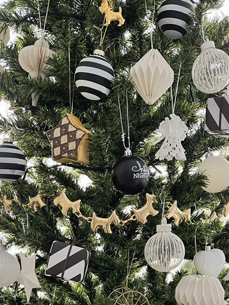 写真では分かりにくいですが上段両端のツリーはパールのデコレーションが